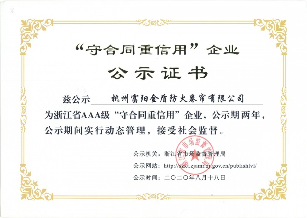 我司榮獲浙江省市場監(jiān)督管理局授予的浙江省AAA級“守合同重信用”企業(yè)公示證書,這是對我司在合同履約及企業(yè)誠信建設(shè)中所取得成績的肯定。公司自成立以來,一直牢固樹立誠信經(jīng)營為核心價(jià)值觀的企業(yè)文化,將“守合同、重信用”作為企業(yè)立身之本、發(fā)展之基,同時(shí)堅(jiān)持實(shí)事求是,始終堅(jiān)持靠誠信贏得客戶的信賴、靠信譽(yù)和質(zhì)量贏得市場的發(fā)展。