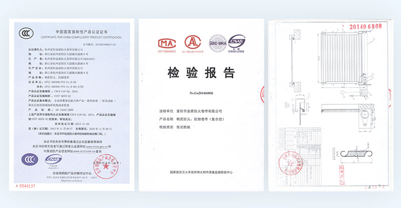 產(chǎn)品按GB14102-2005《防火卷簾》標準檢驗,耐火時間≥3小時,其性能和質量均達到公安部消防產(chǎn)品合格評定中心3C強制認證標準。