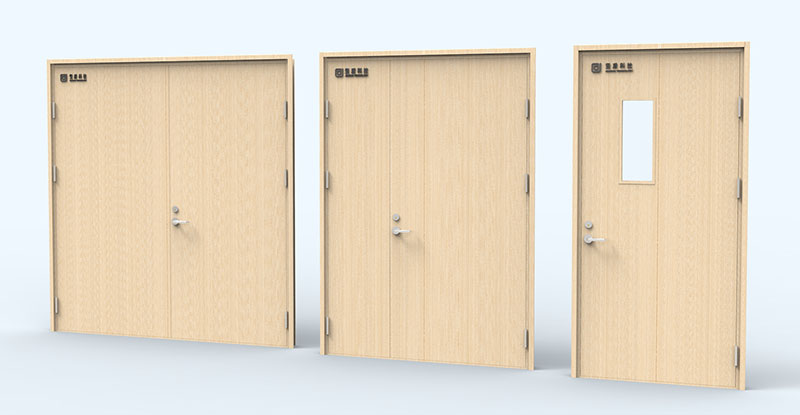 木質(zhì)防火門:采用耐火木或耐火木制品制作門框、門框和門板。木材經(jīng)阻燃劑處理后可達到阻燃標準。單板處理:即在木材表面粘貼一層具有阻燃功能的數(shù)據(jù),達到阻燃目的。