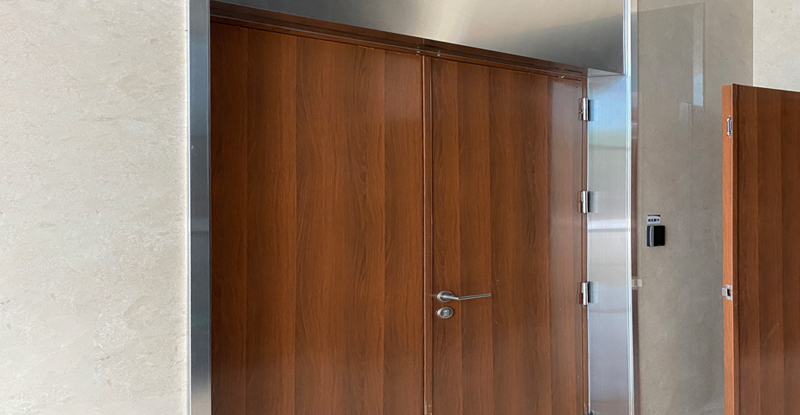木質(zhì)防火門廣泛用于商業(yè),地產(chǎn),公共建筑等項(xiàng)目,具有阻止火勢蔓延和煙氣擴(kuò)散的作用,可在一定時間內(nèi)阻止火勢的蔓延,確保人員疏散。門扇和門框均由木材制成,門扇內(nèi)部填充防火門芯板。該產(chǎn)品已通過國家3C認(rèn)證和防火檢測,防火等級覆蓋甲級90分鐘,乙級60分鐘,丙級30分鐘。